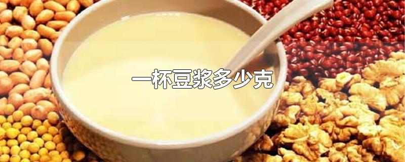 以300ml容量的杯子为例,一杯豆浆大约为350克。每100克豆浆中大约含有0.7克脂肪,1.8克蛋白质,3克钠,0.24克锌,0.5克铁以及其它营养成分。每天早餐可以适量摄入一杯豆浆,有利于补充人体所需要的物质。