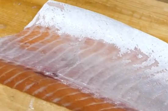 三文鱼的去皮方法其实很简单,如果是冰箱内的冷冻三文鱼,需要先拿出来解冻,等三文鱼融化之后用热水浇灌在三文鱼身上,再慢慢将皮剥掉即可;如果是新鲜的三文鱼需要去皮,找到三文鱼皮和鱼肉之间的连接处,用刀直接划开即可。