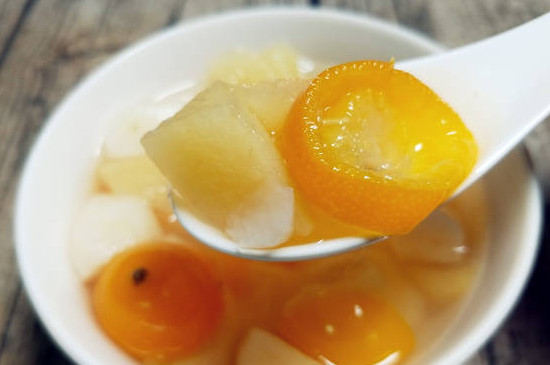 金桔马蹄糖水可以止咳,因为金桔本身就可以改善咽喉肿痛、咳嗽痰多的症状;而马蹄具有清热解火、止渴生津的效果,因此金桔马蹄糖水不仅口感酸甜润滑,而且还可以止咳化痰、清热解火。熬煮金桔马蹄糖水需要一个小时,这样口感更好。