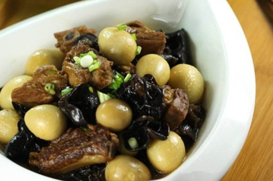 提前将木耳用清水泡发,且把鹌鹑蛋煮熟后剥开壳放置一边备用。将热油下锅之后放入鹌鹑蛋,一直翻炒至外表金黄即可。热锅下油之后放入大蒜煸香,再加入木耳、青椒炒熟,最后放入鹌鹑蛋一起翻炒,加入少量食盐、酱油即可。