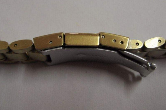 去除金属表带最好是将手表摊开后放在拆带器里面拆卸,也可以自己准备一根顶针,对准表带外侧的拆卸孔顺时针转动即可,但在这个过程中卡针与表带要保持垂直的状态,否则卡针很容易断掉。