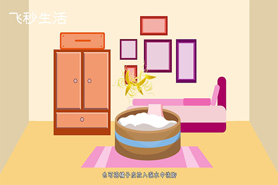 取适量的新鲜橘子皮榨出汁液,涂抹在脚后跟干裂处,每日涂抹2~3次,持续一段时间可使硬皮渐渐变软,裂口也逐渐的愈合,也可将橘子皮放入温水中洗脚也能起到缓解的效果。