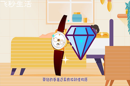 手表中含有镭辐射,长时间的积累会对于健康造成伤害,带钻的手表还具有放射性物质,对于睡眠质量也有很大的影响。一些人习惯将手表带调至很紧,时间一长,会压迫动脉。