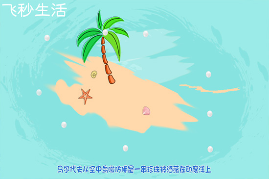 马尔代夫从空中鸟瞰仿佛是一串珍珠被洒落在印度洋上,所以有“上帝洒落在人间的珍珠”的美誉,马尔代夫是亚洲最小的国家,后来被欧洲人发现了它的美景,逐渐成为了被人所知晓的度假胜地。