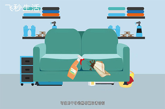若是布艺沙发沾到果汁、咖啡等污渍,需要立即的进行清理,之后取适量的苏打水加入清水混合搅拌均匀,使用抹布蘸取溶液来回擦拭污渍,之后再用吹风机吹干即可。