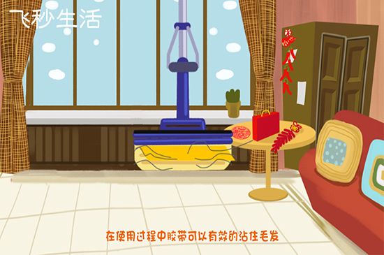 拖把在使用的时候容易沾住毛发,后期很难清除,所以在使用之前可以在边缘的位置用胶带沾住,在使用的过程中胶带可以有效的沾住毛发,打扫完成之后将胶带取掉即可。
