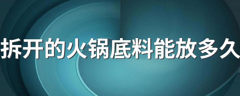 火锅底料拆开后最好在一天的时间吃完,放入冰箱保鲜层建议不要超过两天的时间,因为火锅底料中含有很多的牛油,放久了味道会发生改变,还容易滋生细菌。