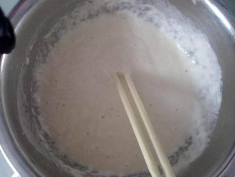 1、酵母用温水化开,放入面粉和成很柔软的面团。