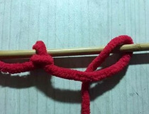 把毛线在棒头绕一圈。