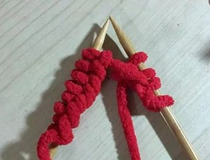 把毛线从针结里拉出来。