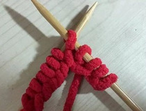 将毛线在织棒上绕出很多个针结。