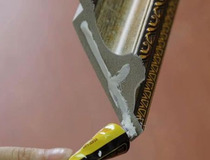 用胶水固定四个角,组装四个角时,胶水不要涂太多或涂边上,不然会溢出,沾到画框上,粘好按压五分钟,确保牢固。
