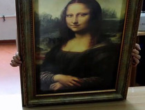 把油画从后面镶嵌入外框内。
