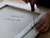 用安装固定片把油画和外框相连固定。