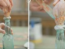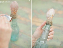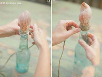 在瓶口涂上热熔胶,然后把海螺放在瓶口。