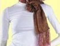 再将另一边绕过这个环,将这一边方巾的中间部分从上面穿过去,系成蝴蝶结。将蝴蝶结一边展开成花朵状。