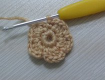也是先立一针,然后在立的针目里钩织1个短针,然后在拉一个辫子针,再在下一个的针目里钩织3个长针,然后再拉1个辫子针,与下一个辫子针钩织一个短针,这样就是一个花瓣的钩织了。
