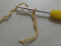 然后再拉8个辫子针,返回在倒数第2针里面做引拔针,余下的针数都是做引拔针连接,这样花朵的小枝就钩织好了。