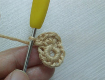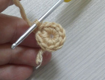 先立一针,然后在立的针目里钩织1个短针,然后再在线圈里钩织9个短针,与第一针做引拔针连接。