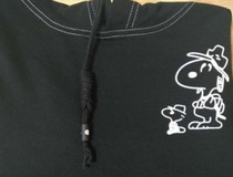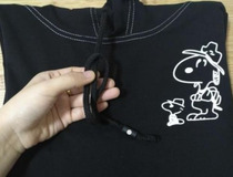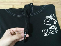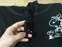 首先,准备一件有带子的卫衣,第一步先把卫衣的带子向上折。