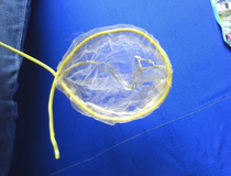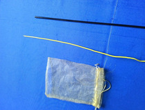 准备一根小铁丝、一个小网袋和一根空心的小铁棍。