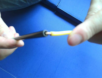 把铁丝塞进空心的小铁棍里(没有空心小铁棍可以找小竹子代替)。