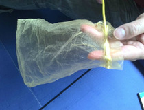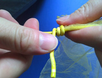 把穿过袋子口的铁丝那端缠绕住另一端铁丝。