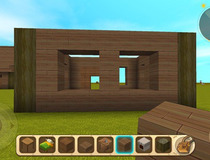 之后在9格高的那一面用不同的木料框出一个门的位置,在用木板把第4层的原木一个一个连接起来形成一个框架,在非门的位置地面一层的位置也用木板连起来,形成一个2格高的窗户位置。