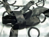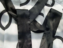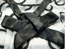 将下面的带子折叠成蝴蝶结的一边S型,顺着带子的方向放置在右边;
