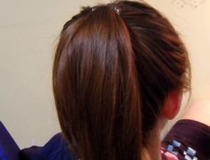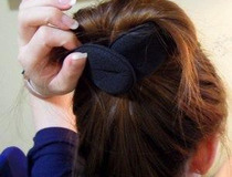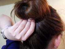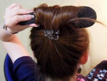 将头发稍微拉一下,盖住海绵棒,用小夹子把周围的碎发固定好,就完成了。