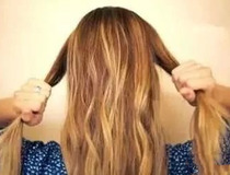 然后将系好的头发分成两部分。