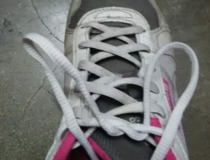 把两条鞋带交叉在一起,打个普通的结。