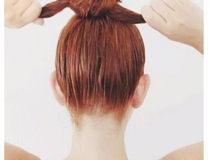 发尾部分围着打结绕个圈,然后用黑色小发夹或橡皮筋固定好,这样就可以完成这款丸子头简单扎发了。