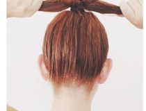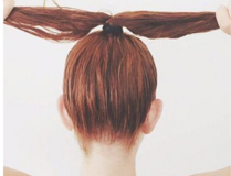 将扎好的马尾辫分成均匀的两部分,方便下面打造丸子头。