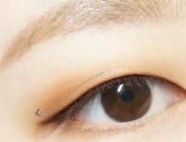 下眼睑靠近外眼角的2/3段用棕色眼影填充,这样能让眼睛看起来更大。