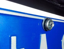 检查完螺丝孔后,预先套好每组螺丝,由上而下依次顺序为螺丝杆、防盗帽、垫片。把车牌上预留的孔和汽车安装车牌位置的螺丝孔对齐,然后拧上第一组螺丝,注意不要拧紧,能挂住车牌即可。