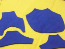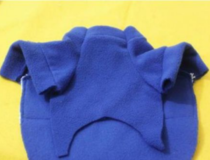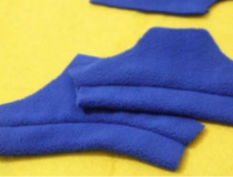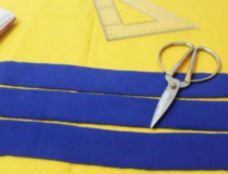 接下来再用剪刀剪三条长宽高一样的布条,是用来做袖口、领口的布料。
