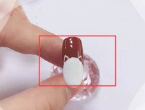 用拉线笔取车厘子色甲油胶,画出猫咪的项圈,照灯30秒,然后取少量粘钻胶,将金色的细铆钉粘在项圈上,照灯30秒,这样猫咪的铃铛就有了。