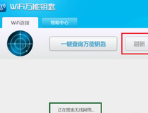 接下来我们需要打开笔记本中的“wifi开关”,通过按“Fn+F5(wifi)”组合键来实现开启wifi热点操作。接着运行“wifi万能钥匙PC”版程序,点击程序主界面中的“刷机”按钮,则程序自动搜索周围的wifi网络。