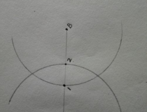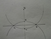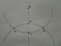 接着,以点B为圆心,同样将大于直线AB的1/2的长度设为半径,用圆规画一道穿过线AB的圆弧。