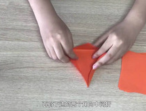 将下面的三角向上折,再将下面的两个角向中间折,打开按照折痕折好。