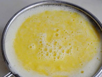 搅拌完后用漏勺过滤,加入适量的炼乳即可。