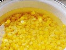 锅里加水烧开后倒入玉米粒煮五分钟左右,水应为玉米的2倍左右。