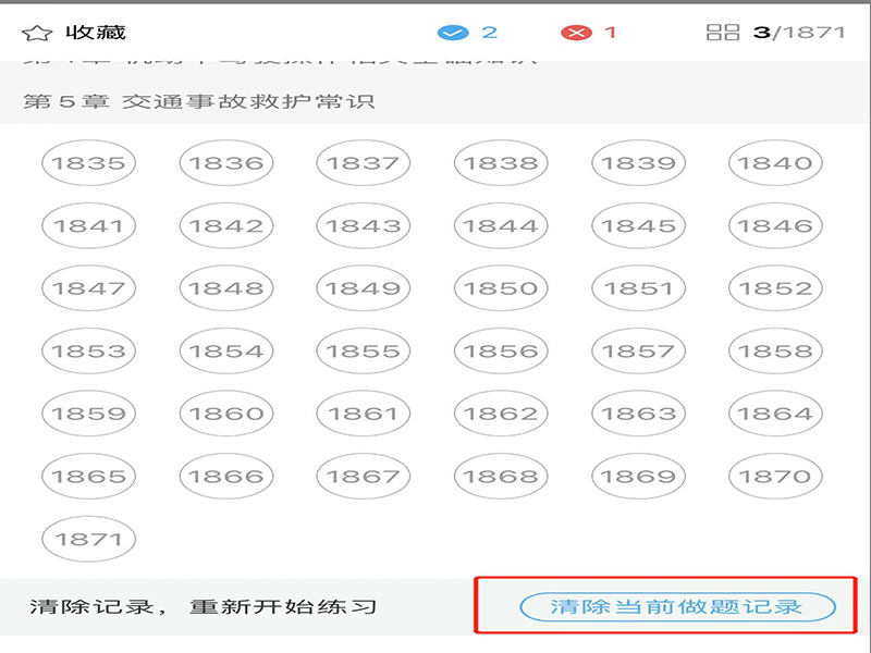 4、在题库页面上,拉至最底部,找到并点击“清除当前做题记录”,即弹出是否清空做题记录的提示窗口。