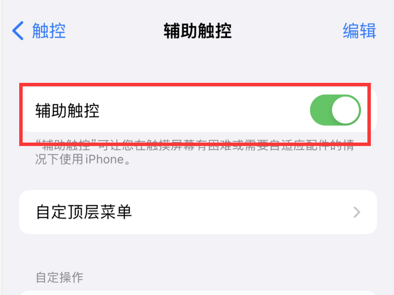 3、把“辅助触控”按钮打开即可设置出虚拟的home键。