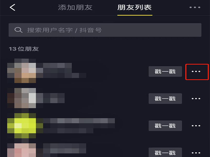 4、在朋友列表页面上,选择需要取消关注的好友,点击后面的三点图标,打开选项功能栏。