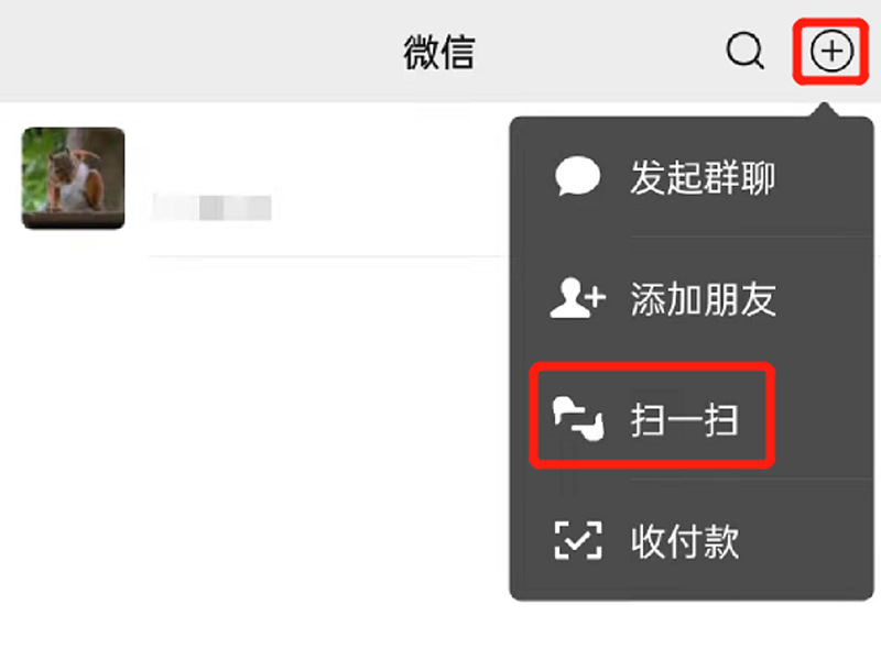 打开手机微信app,点击“+”号,再点击扫一扫,对群聊二维码进行扫描入群。