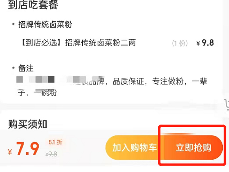 美团预约订餐,然后到店吃,需要在美团进行抢购订餐,最后去店面出示订单凭证即可。具体操作方法如下: