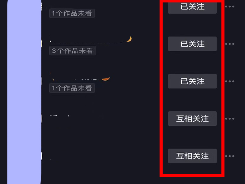3、进入“关注列表”界面后,如果曾经互关的用户的头像旁边变成了“已关注”,则说明对方已经将你取关。