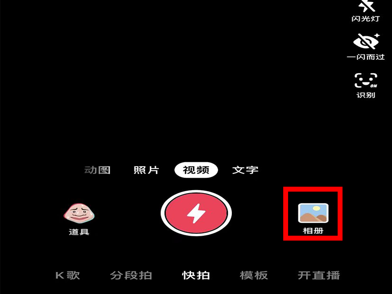 1、打开抖音,点击界面中间的“+”号, 进入拍摄界面,再点击右下角的“相册”,进入“照片选择”界面。